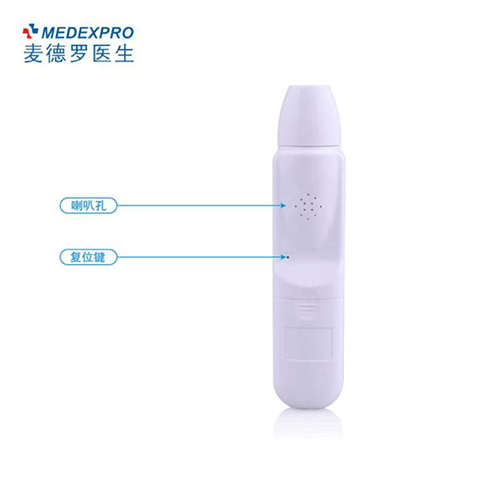 (1)先確認探頭保護蓋已裝上,并確認耳溫計的探頭部分是否干凈。如有異物,請先用棉簽 或柔軟的干布蘸95%的無水酒精清潔。